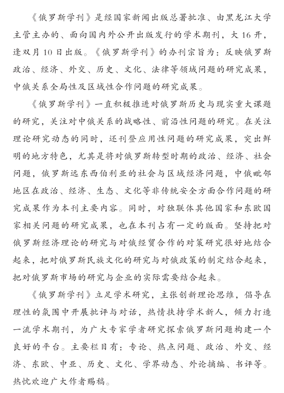 《俄罗斯学刊》简介